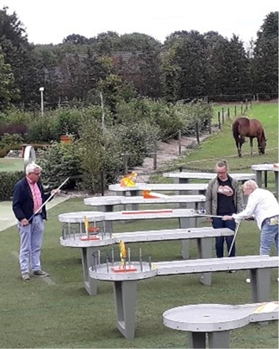 Onze PITPATbaan / Biljardgolf, bestaat uit 18 tafels die allemaal voorzien zijn van een opslagpunt, verschillende hindernissen en een hole (put). De tafels zijn 3 meter lang, en worden bespeeld met een biljard keu. Zeer geschikt voor iedereen die van een uitdaging houd.